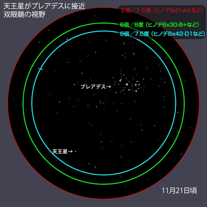 ・天王星:プレアデスの近くにあり、ほぼ一晩中見えています。観望の好期です。